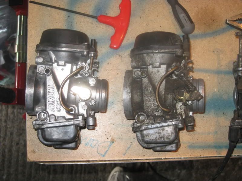 The carbs were a bit of a pain. Most of the bolts had seized and some required drilling out. A pair of high leverage pliers did well with most of the screws that wouldn't come undone using a screwdriver. All the screws were replaced with some M5x12 button headed s/s ones.